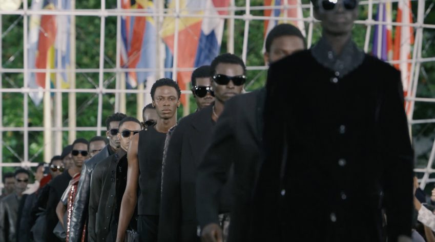 大秀开始,由 Pharrell Williams 创作的《Triumphus Cosmos(宇宙的胜利)》缓缓响起,此番这位品牌创意总监将自身音乐才能、资源回馈到品牌中,与 John Legen、Niles Rodger 等黑人歌手合作打造 3 首原创曲目,均由 Voices of Fire 合唱团和新桥管弦乐队在现场演奏。