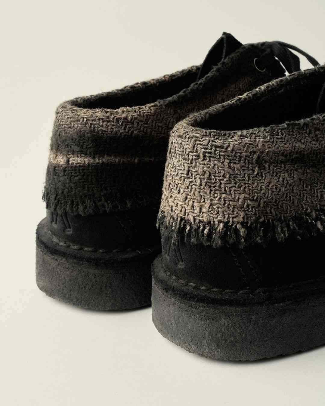 同样的例子,不止 JUNTAE KIM 一个。另一韩国人气时装品牌 JiyongKim 最近刚刚释出的与经典鞋履品牌 Clarks Originals 合作系列,也能看出些许端倪。以晒痕、漂白等自然痕迹视觉为核心设计语言的 JiyongKim,这一次在 Clarks Originals 经典的 Wallabe、Desert Trek 等鞋型之上,充分施展了自己的美学功力。