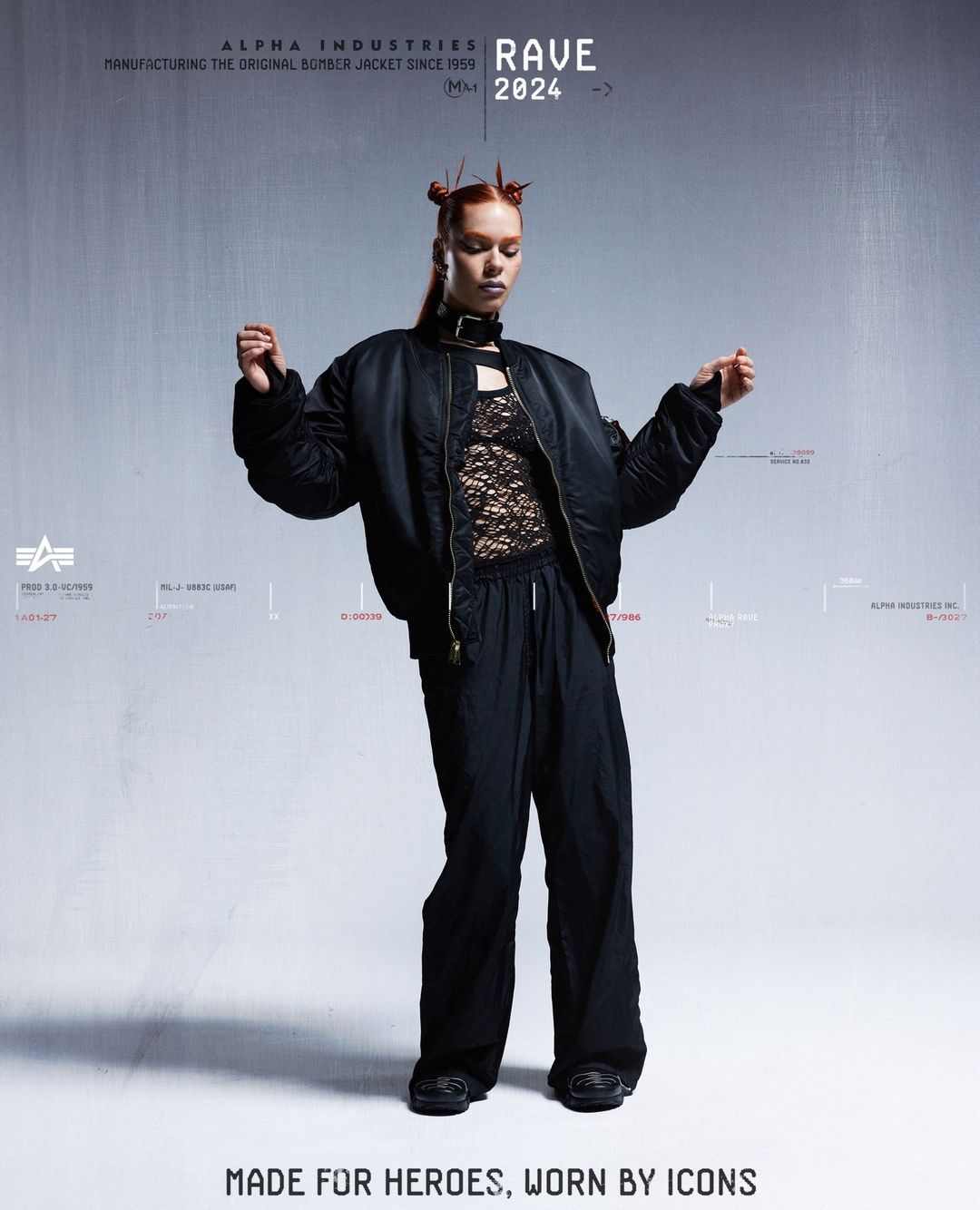 包括朋克、Rave 在内的多种亚文化,Alpha Industries 通过捕捉不同时代文化受众的着装特征,打造出融入 MA-1 夹克的精湛造型,将横跨数年甚至数十年的文化变迁体现得淋漓尽致。而这些突破 Alpha Industries 在消费者心目中固有印象的造型,在带来新鲜感的同时也展现出了 MA-1 在时尚长河中的隽永地位。