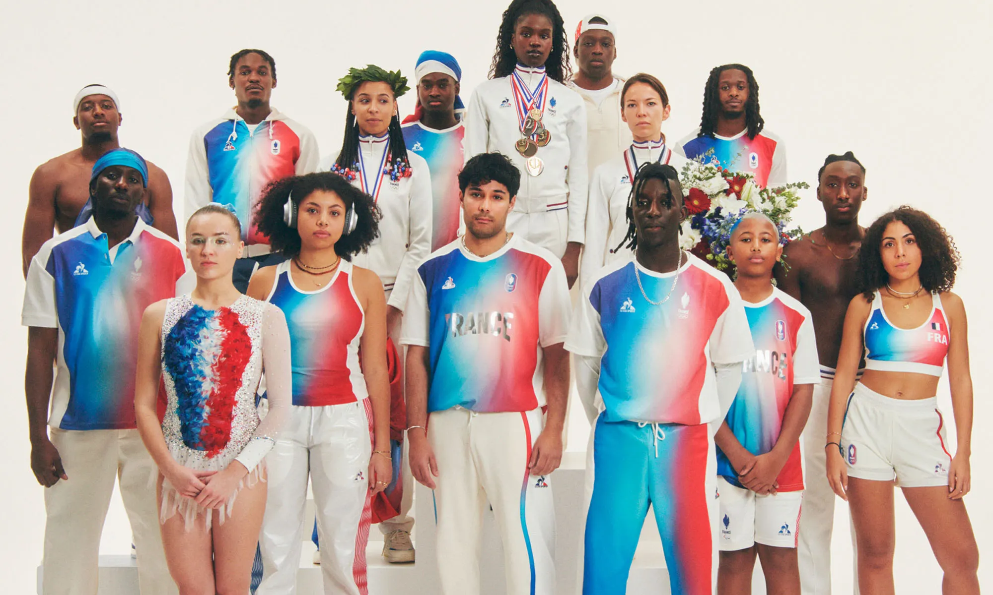 首先是东道主法国,除了由 Berluti 打造的开幕式、闭幕式服装外,法国的运动员们在比赛日将穿着由街头服饰品牌 Pigalle 的创始人 Stéphane Ashpool 携手 Le Coq Sportif 设计的运动服。