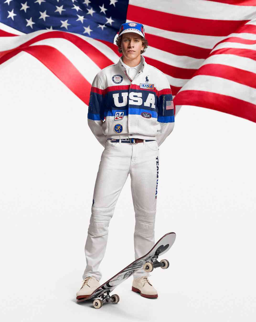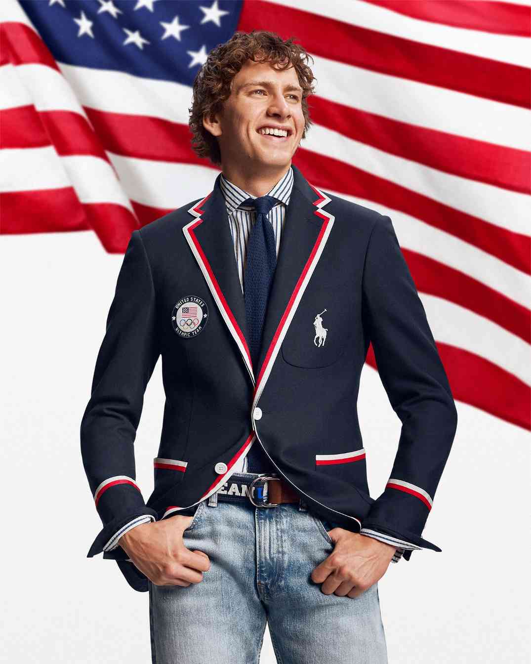 开幕式的服装营造出一些正式氛围感,采用了经典的 Ralph Lauren 剪裁,带来包括合身的西装外套、针织领带、条纹衬衫和牛仔裤。而在闭幕式上,运动员的服装风格则更倾向于美国腹地,而非常春藤联盟,服装包括带有贴片装饰的赛车风格夹克和白色牛仔裤。