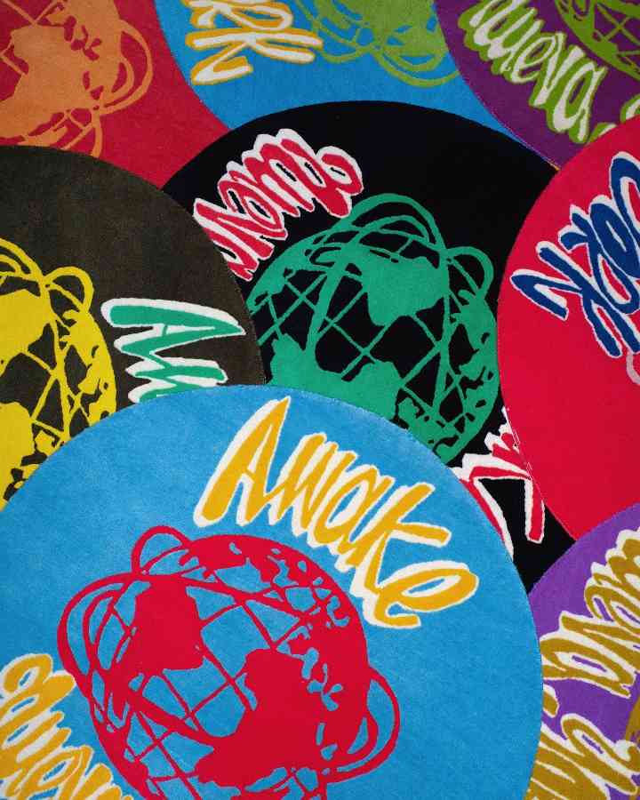 除此之外,不久前 Tyler, the Creator 个人品牌 le FLEUR* 联合家居单位Parachute 推出了一个完整的寝室起居系列,从床上用品到拖鞋、毛毯一应俱全,全部以 le FLEUR* 惯用的柔和花卉色系呈现,呈现出慵懒的美式家居氛围。而 Awake NY 则是与藏族传统家族工坊合作,推出了纯手工编织、染色的地毯作为 2024 夏季配饰系列的核心单品,同样旨在丰富品牌调性。