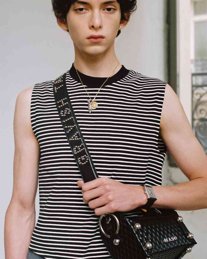 M A S U 的 2025 春夏系列不久前已经在巴黎正式亮相,从印有石津谦介肖像的卫衣就能看出 2025 春夏系列是 M A S U 对于流行于日本的 IVY STYLE 的总结与升华,并延续后藤愼平以往一贯的醒目层次感与对色彩的大胆应用,除了将 IVY STYLE 中的经典单品悉数呈现之外,标识性的复杂工艺提花亦贯穿始终,而后藤愼平曾经在知名 Archive 选货店 LAILA 任职时积累的审美积淀也让这个系列更具完成度,在更具创造力的时装角度重新诠释 IVY STYLE。