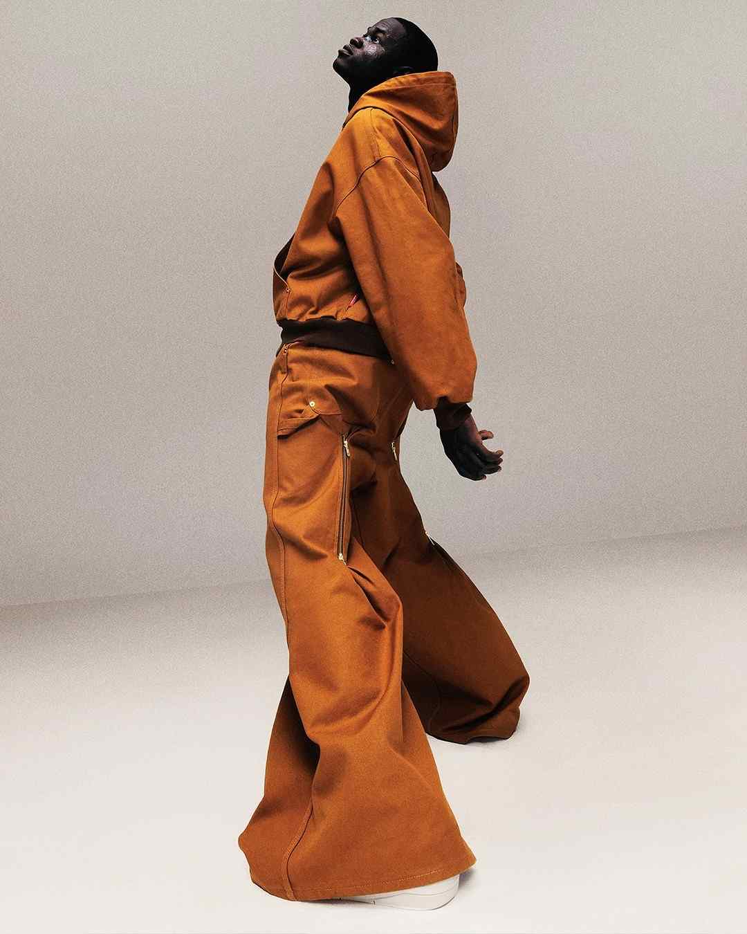 从去年秋冬开始,FUMITO GANRYU 开始重新审视高质素面料的基础廓形与个性化表达之间的微妙关系,尤其是工装与运动这两大类别。比如对经典的 Patagonia Retro-X 的致敬,保留原有廓形的基础上用更高质感表现的抓绒面料配合抛光纯铜拉链呈现,加长的衣袖与出众的垂坠感赋予更加慵懒的气质,类似的细节调度贯穿整个系列,而不久前曝光的 2025 春夏系列亦是如此。