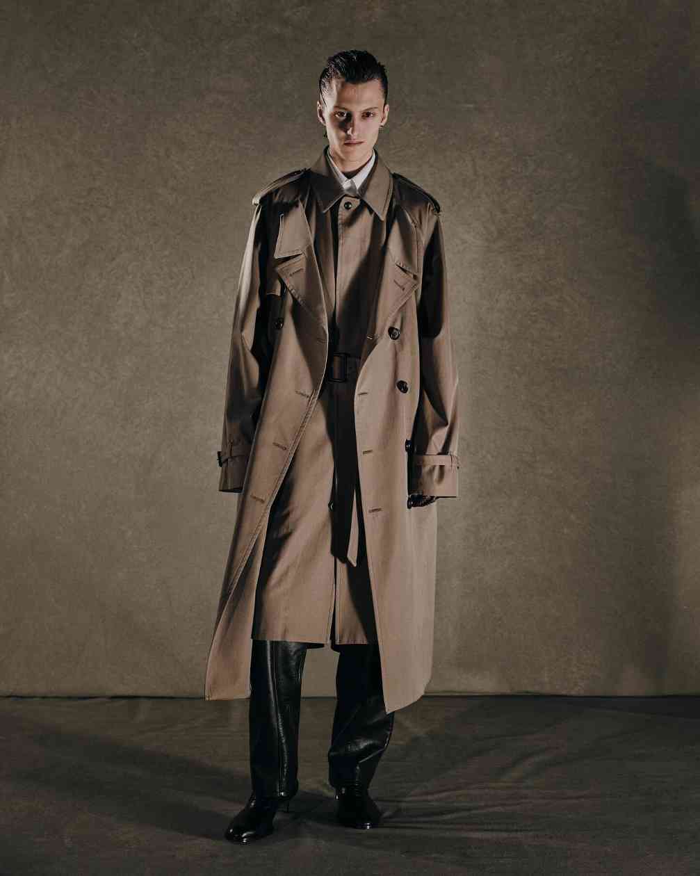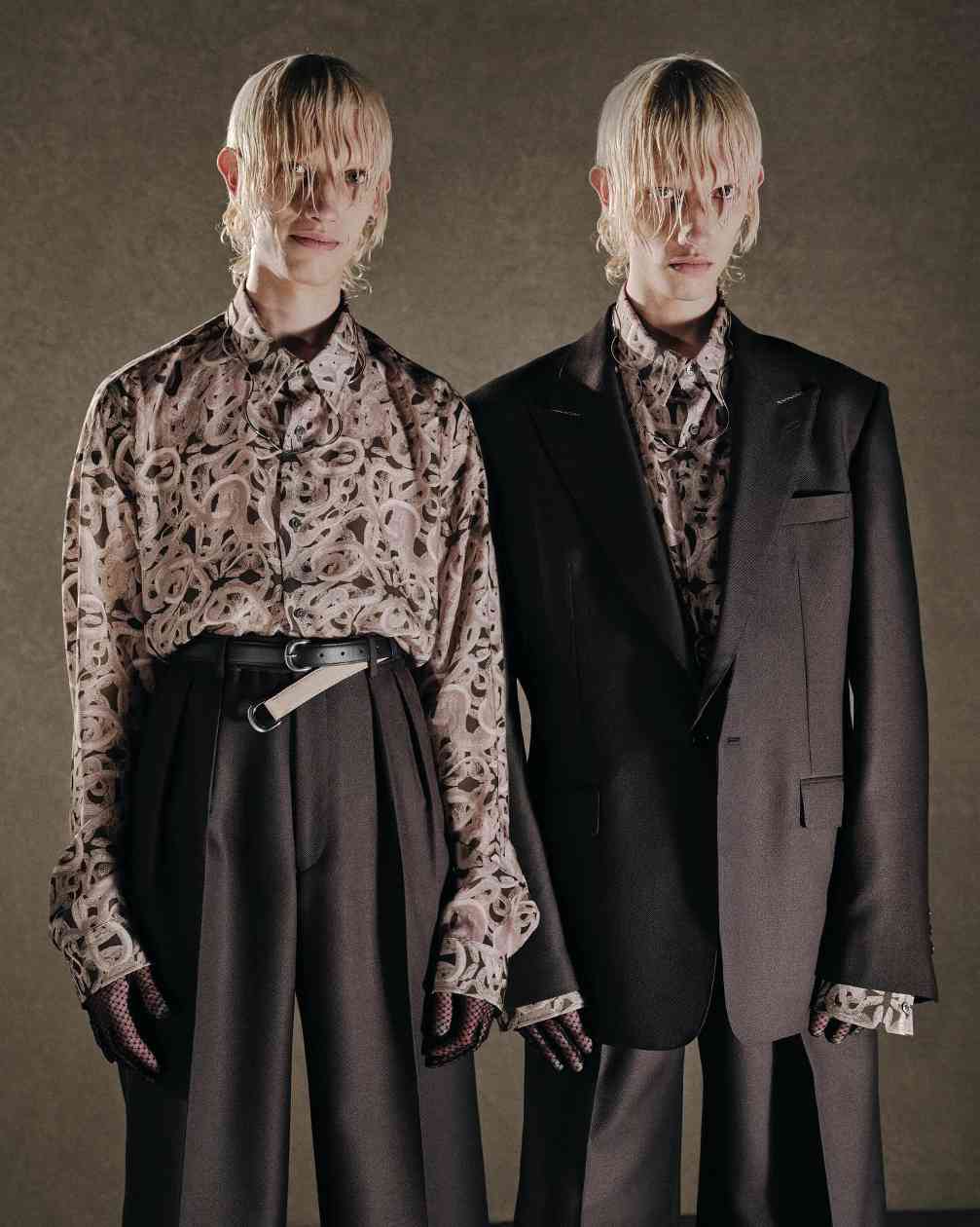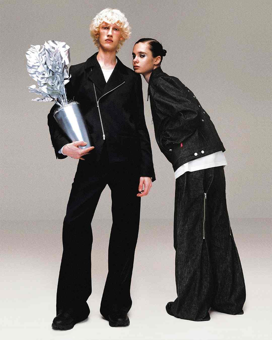 而女装则是将皮革束带、项圈以及内衣等亚文化中常见的元素与夹克或裙装相结合,呼应本次主题的禁忌神秘感。纵观 JOHN LAWRENCE SULLIVAN 的 2025 春夏系列,其实某种程度上也是此前「Stacking」主题系列的延伸,继续挖掘后朋克时代文化。