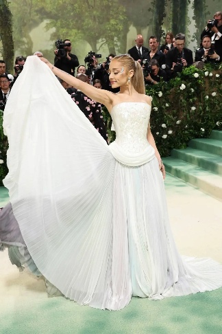 其中过程中颇具看点的部分是,Anna Wintour 没有如往届那样身着 CHANEL 出席,而是选择了 Jonathan Anderson 的特别定制,灵感来自 19 世纪时装巨匠 Charles James 于 1944 年设计的晚装斗篷。此外,Ariana Grande、 Taylor Russell、Omar Apollo 也都选择 LOEWE 礼服亮相红毯。