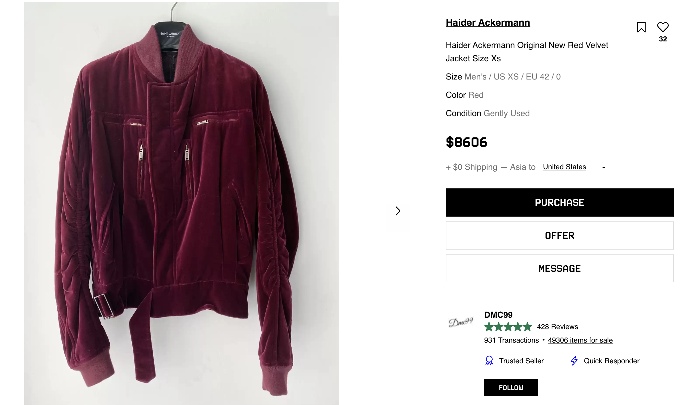 Haider Ackermann 经典 Archive 作品至今依然有着俗人气和不菲售价 | Via Grailed