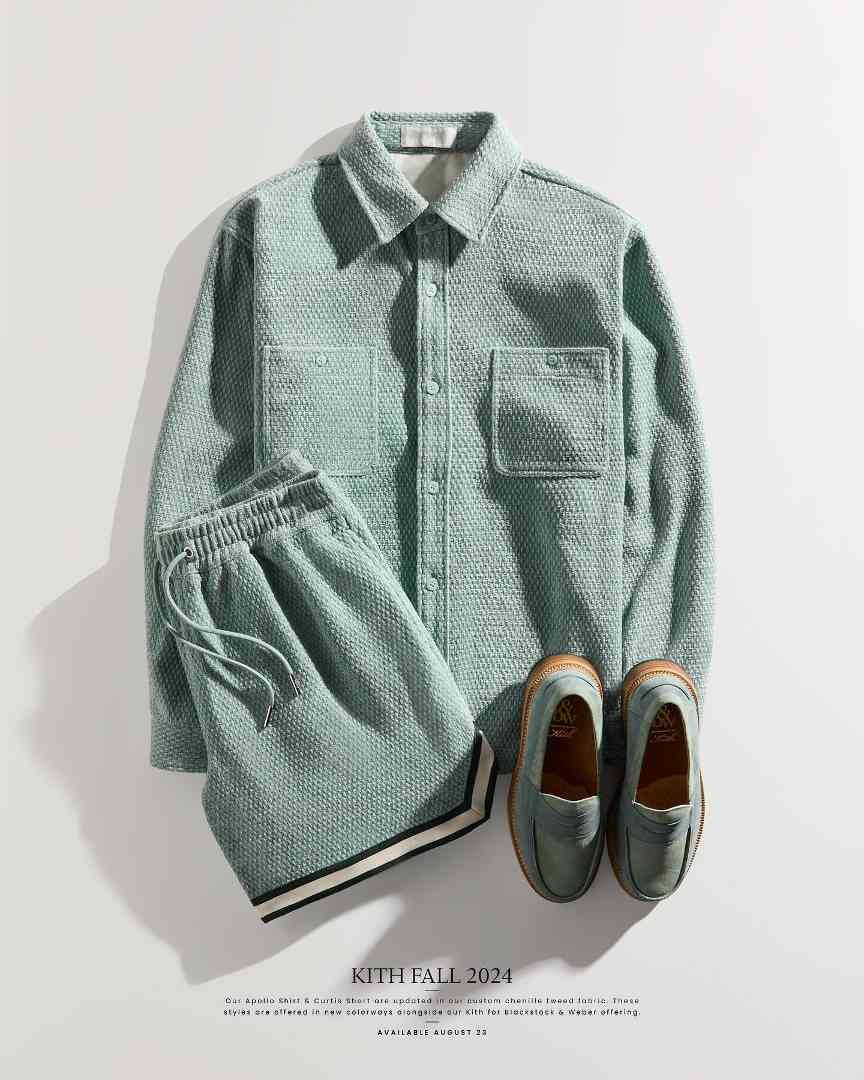 其实从如今很多街头品牌呈现出的高完成度能看出,品牌团队并不是简单粗暴地通过对于成本高昂面料的盲目堆砌来提高定价,从而获取更大的利润空间,而是在各自品牌基因下向更高审美维度拓展,就比如 KITH 在今年 6 月份推出的「&Kin」系列,将宽松的美式正装以及日式传统服饰与街头元素相结合,甄选来自世界各地的高质素面料诠释,出众的垂坠感与标识性的腰果花元素贯穿始终,作为品牌首个高端系列在 Ronnie Fieg 独有的松弛感中尝试出与众不同的绅装格调,这似乎是当下这些「高价」街头品牌的缩影。