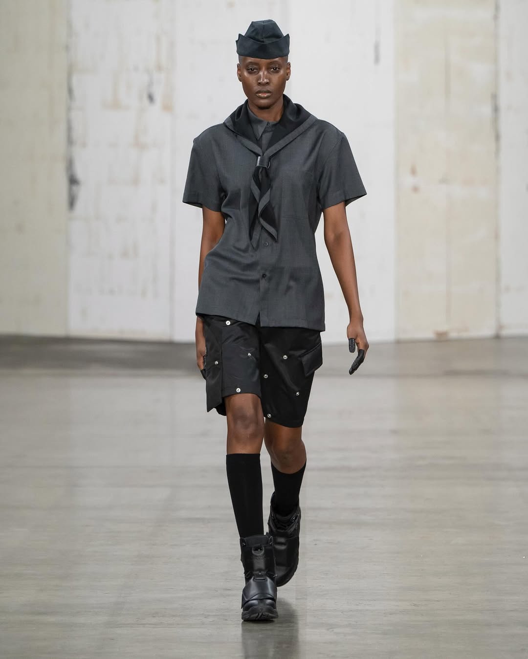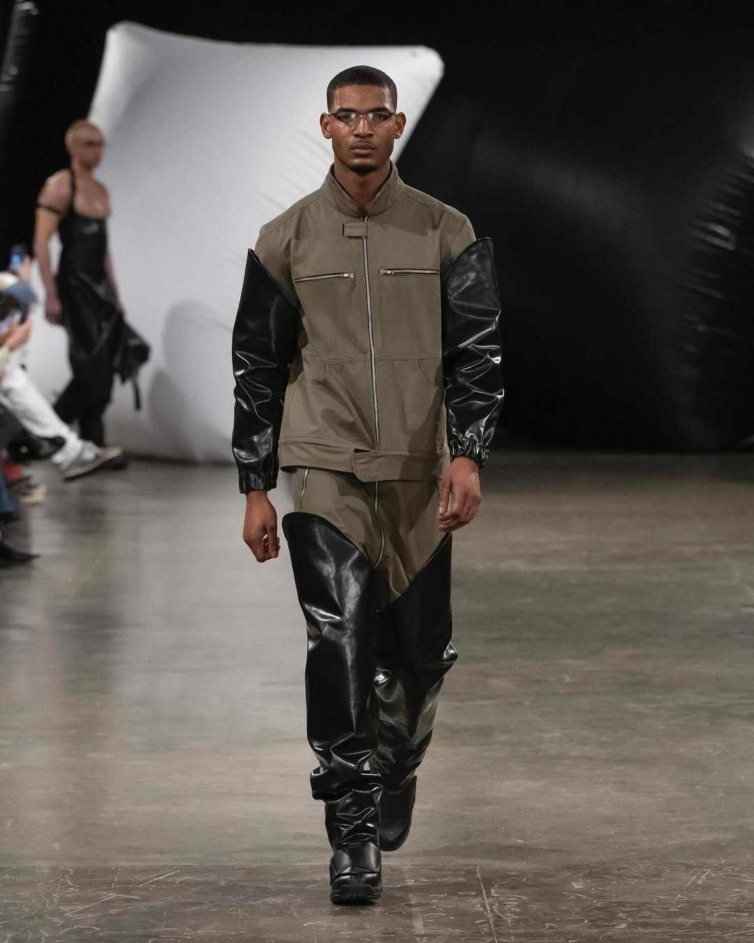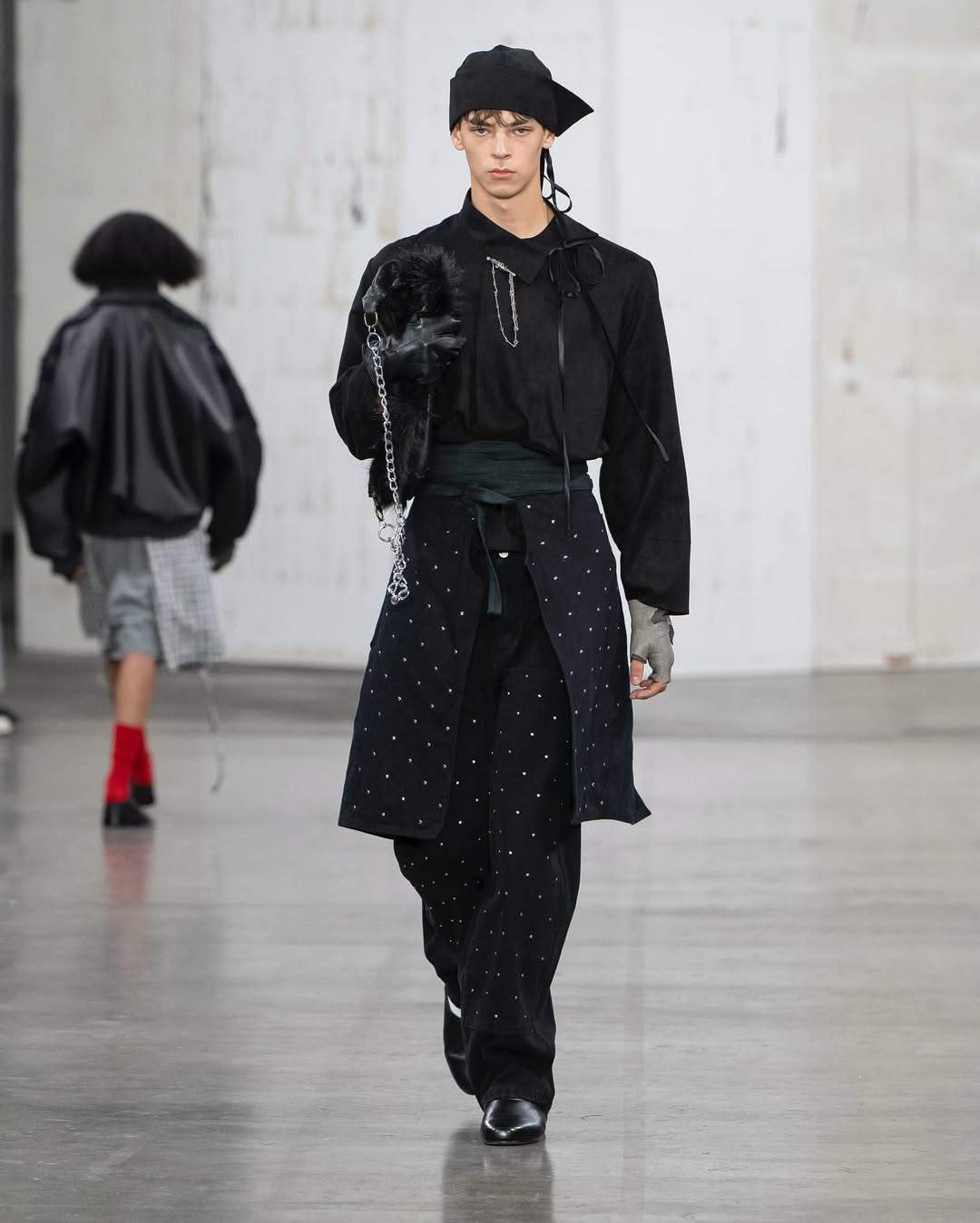 年仅 24 岁的 Olly Shinder 于 2022 年在中央圣马丁学院毕业,随后开启了他的时尚设计生涯。设计上, Shinder 深受户外服装、军装及功能性服装影响,通过对男装的独特理解以及性别模糊化的首发,构建出一种非常新颖的风格体系。