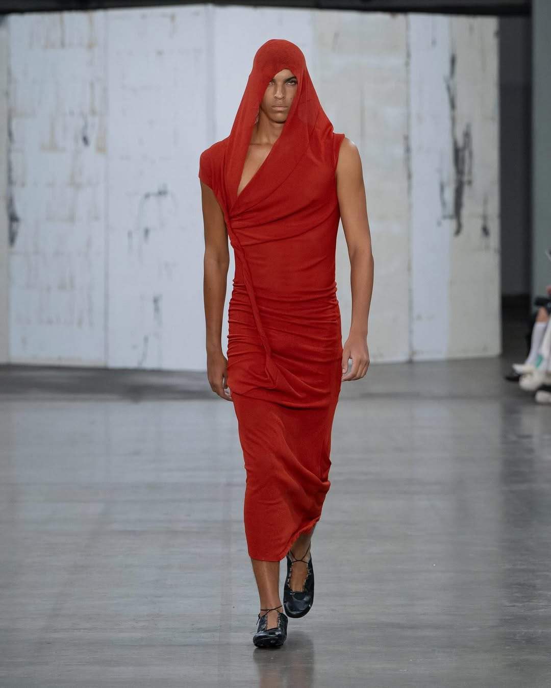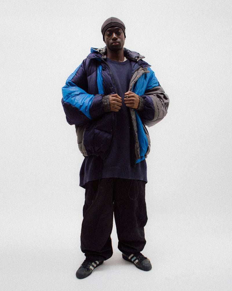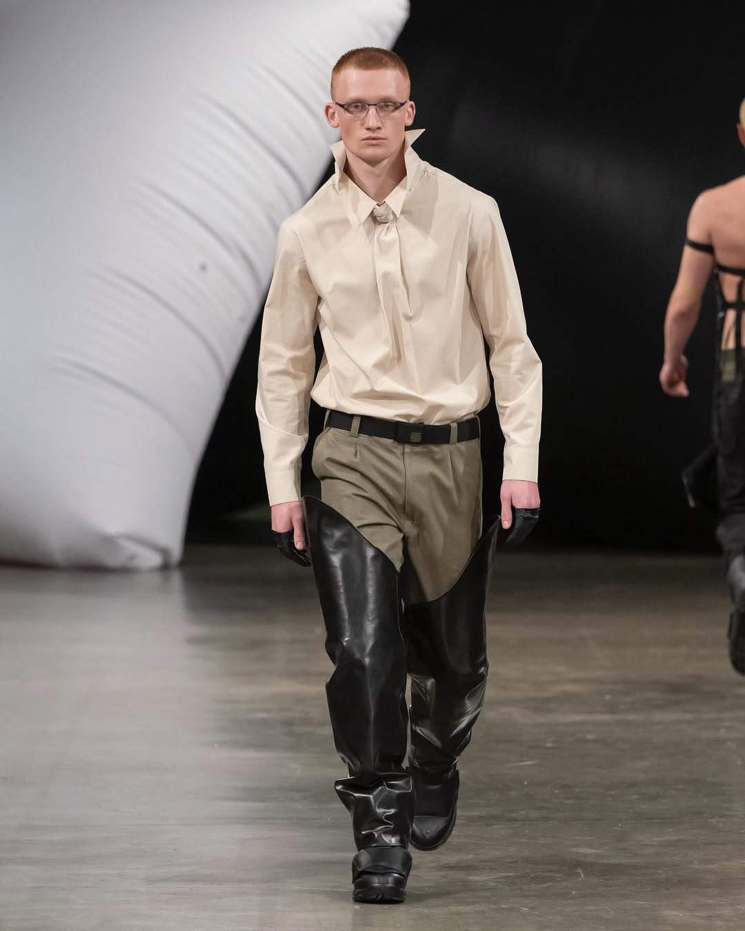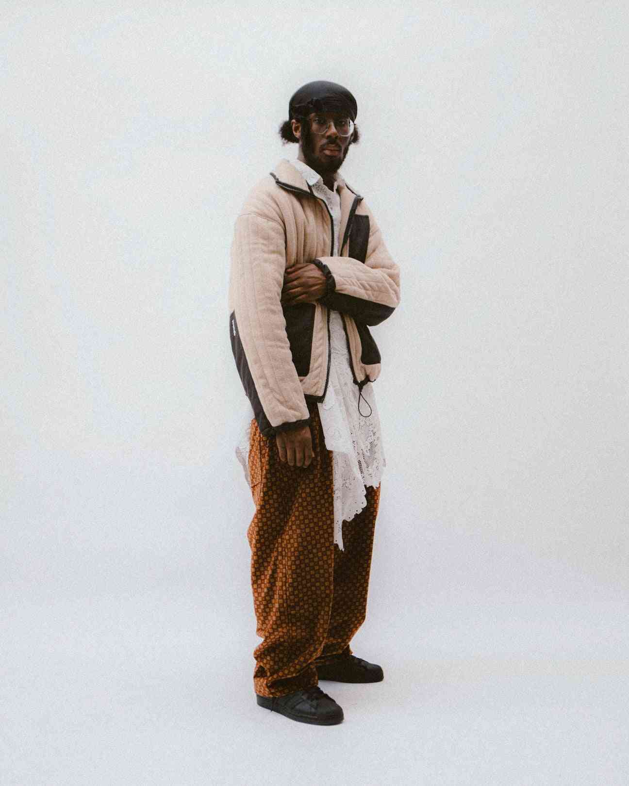 年仅 24 岁的 Olly Shinder 于 2022 年在中央圣马丁学院毕业,随后开启了他的时尚设计生涯。设计上, Shinder 深受户外服装、军装及功能性服装影响,通过对男装的独特理解以及性别模糊化的首发,构建出一种非常新颖的风格体系。