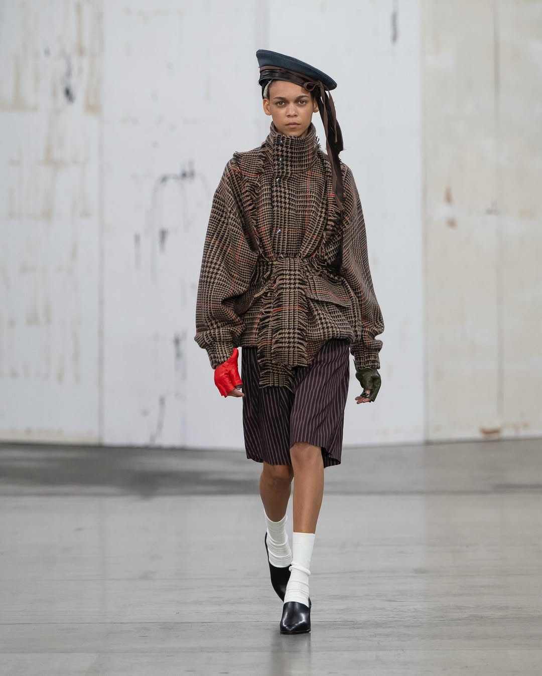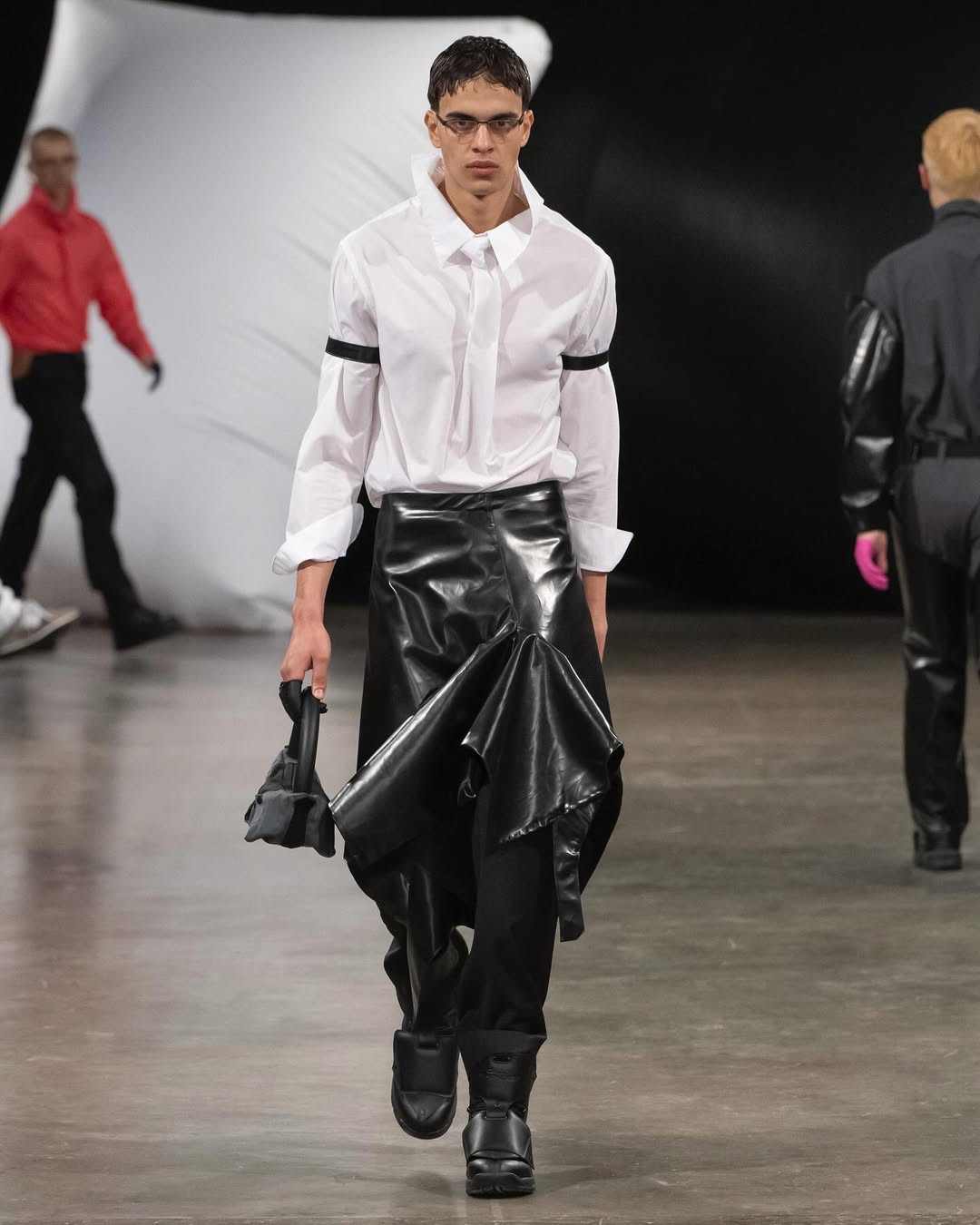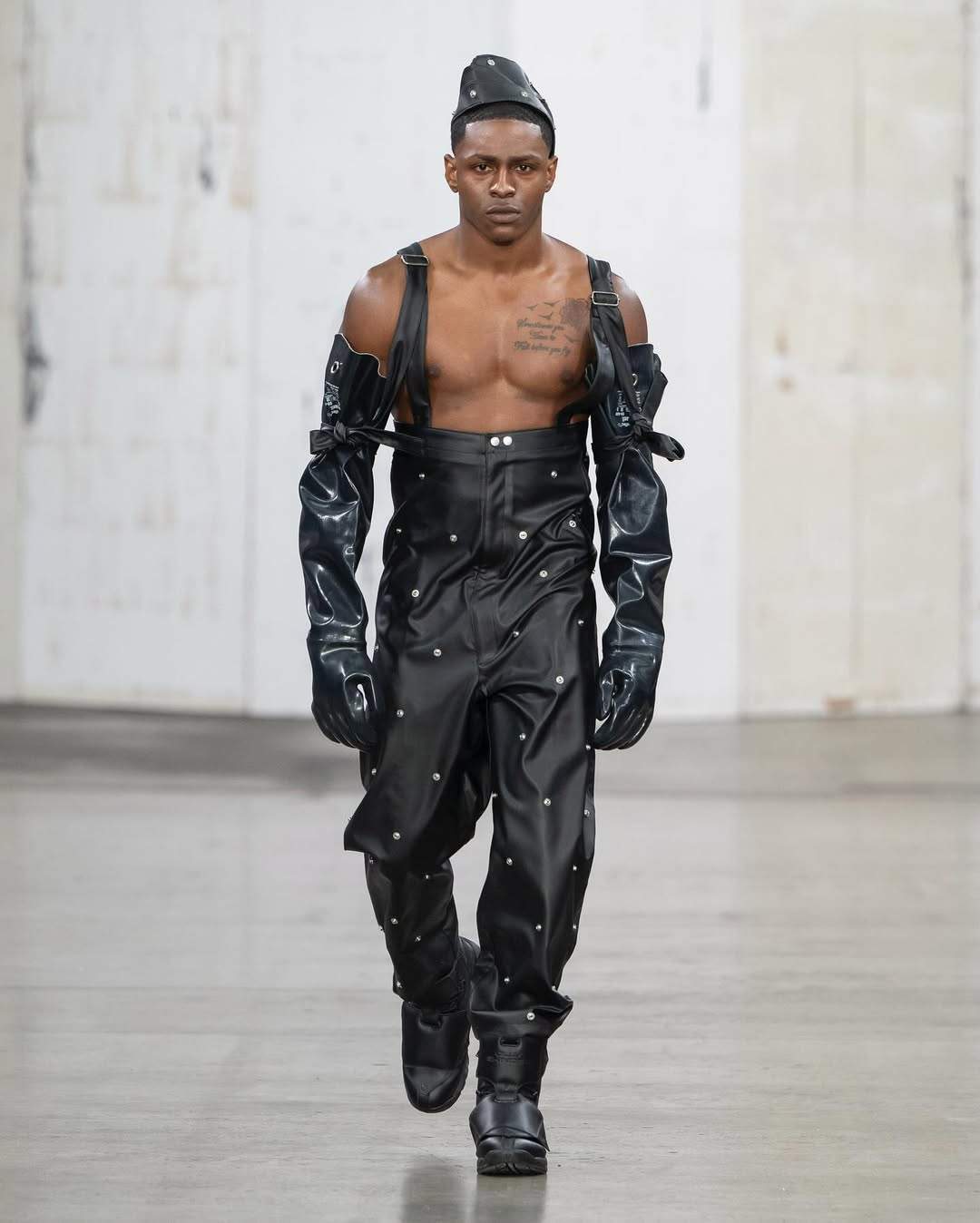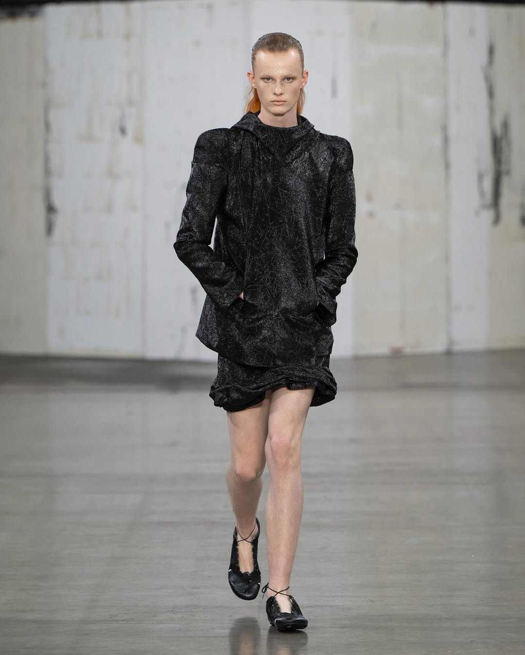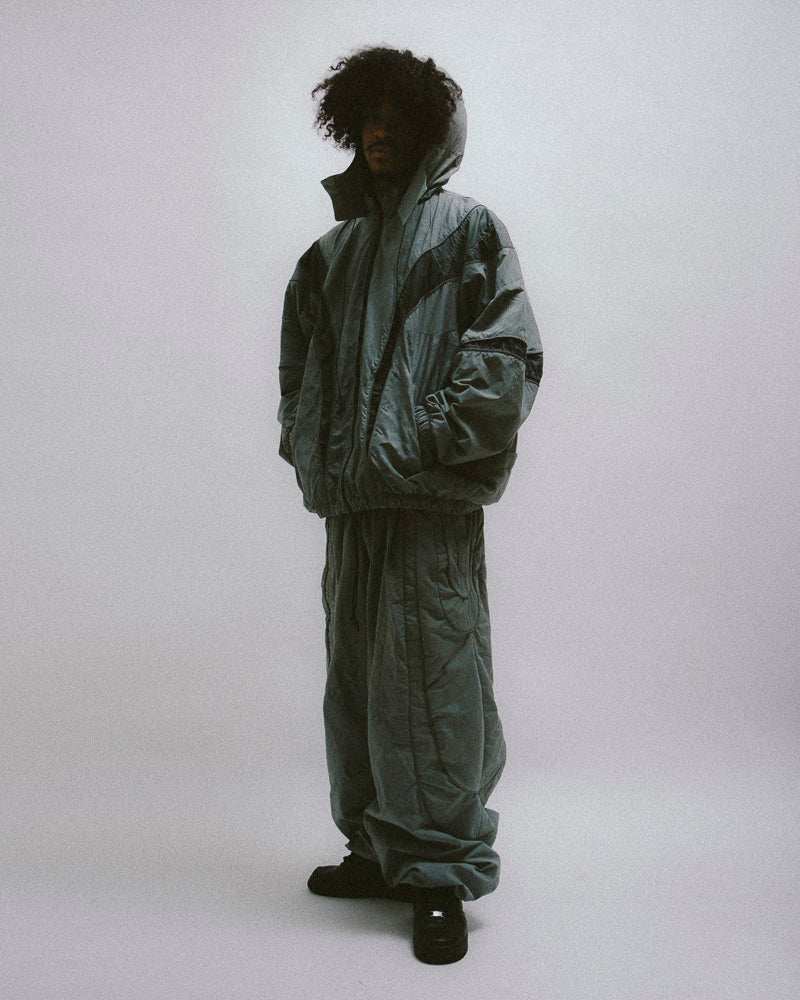 年仅 24 岁的 Olly Shinder 于 2022 年在中央圣马丁学院毕业,随后开启了他的时尚设计生涯。设计上, Shinder 深受户外服装、军装及功能性服装影响,通过对男装的独特理解以及性别模糊化的首发,构建出一种非常新颖的风格体系。
