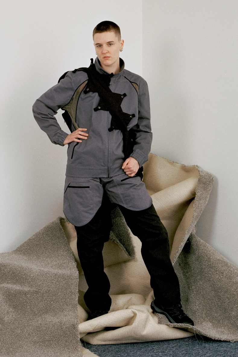 最初从事工业和产品设计的 Pia Schiele,通过亲身实践的经验成就了她的独特创作,展现出无限的好奇心与适应力。品牌此前被 Dover Street Market 相中以及得到 Corteiz 主理人 Clint 上身后,这次在 Fashion East 的展示也为往后的发展奠定强力基础。