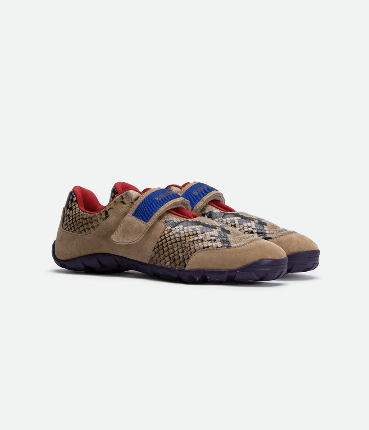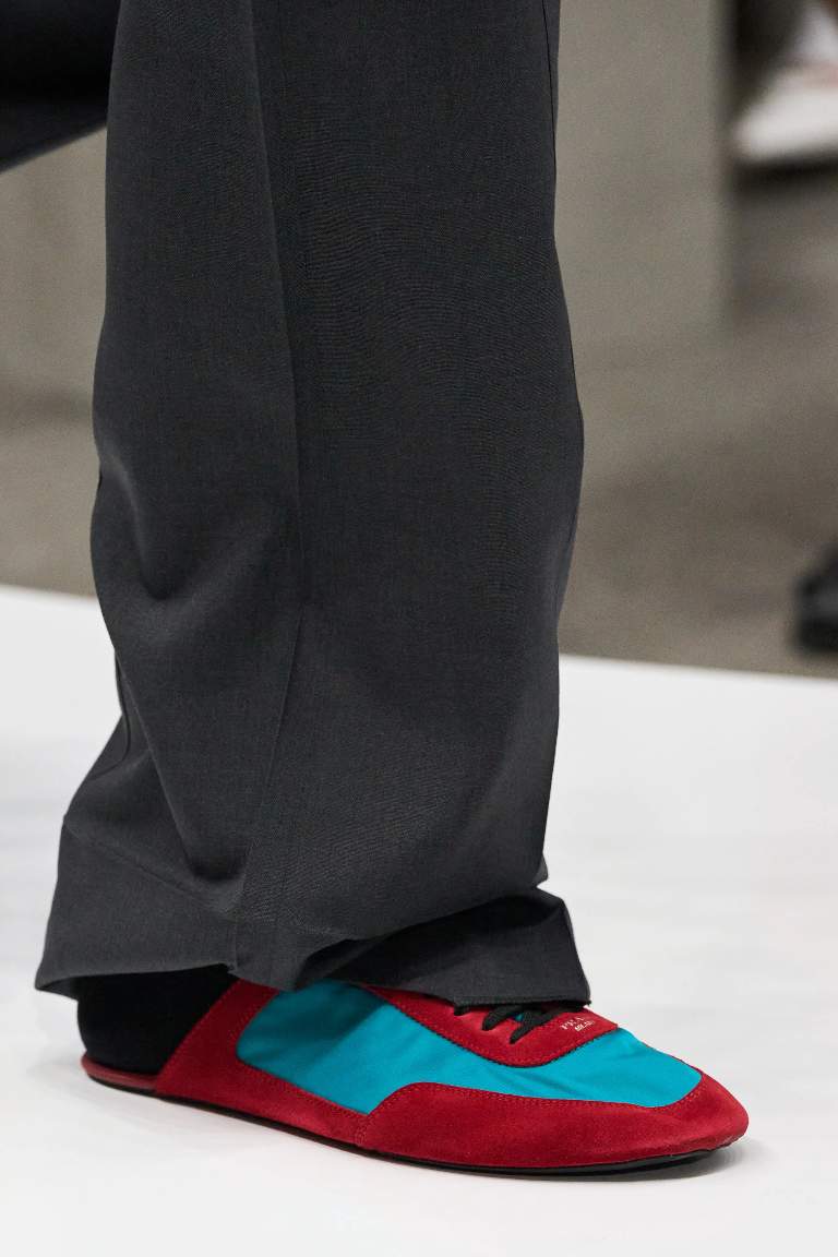 纤薄到几乎是居家拖鞋的程度,搭配上极简且带点复古德训神韵的运动鞋面,再配以多款对比度颇高的鲜亮跳跃拼色方案,PRADA 2025 春夏季中这双薄底鞋新作,无疑将成为品牌诠释「叛逆贵公子」气质的又一代表作。