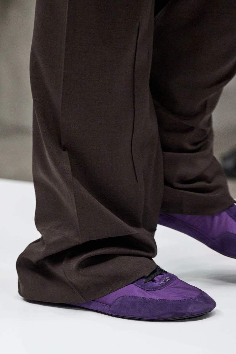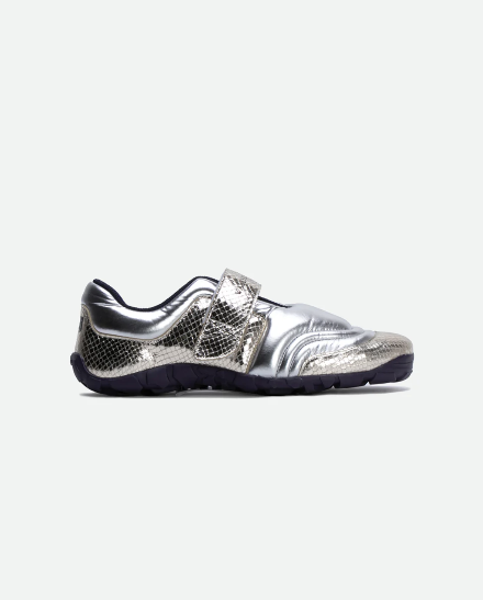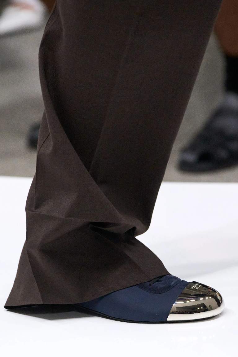 Miu Miu 与 New Balance 合作款的爆火,多少也激发 PRADA 加重了自己在薄底鞋品类上的发力。品牌 2025 春夏系列中,多款薄到极致的鞋款新作,已经吸引了众多目光。