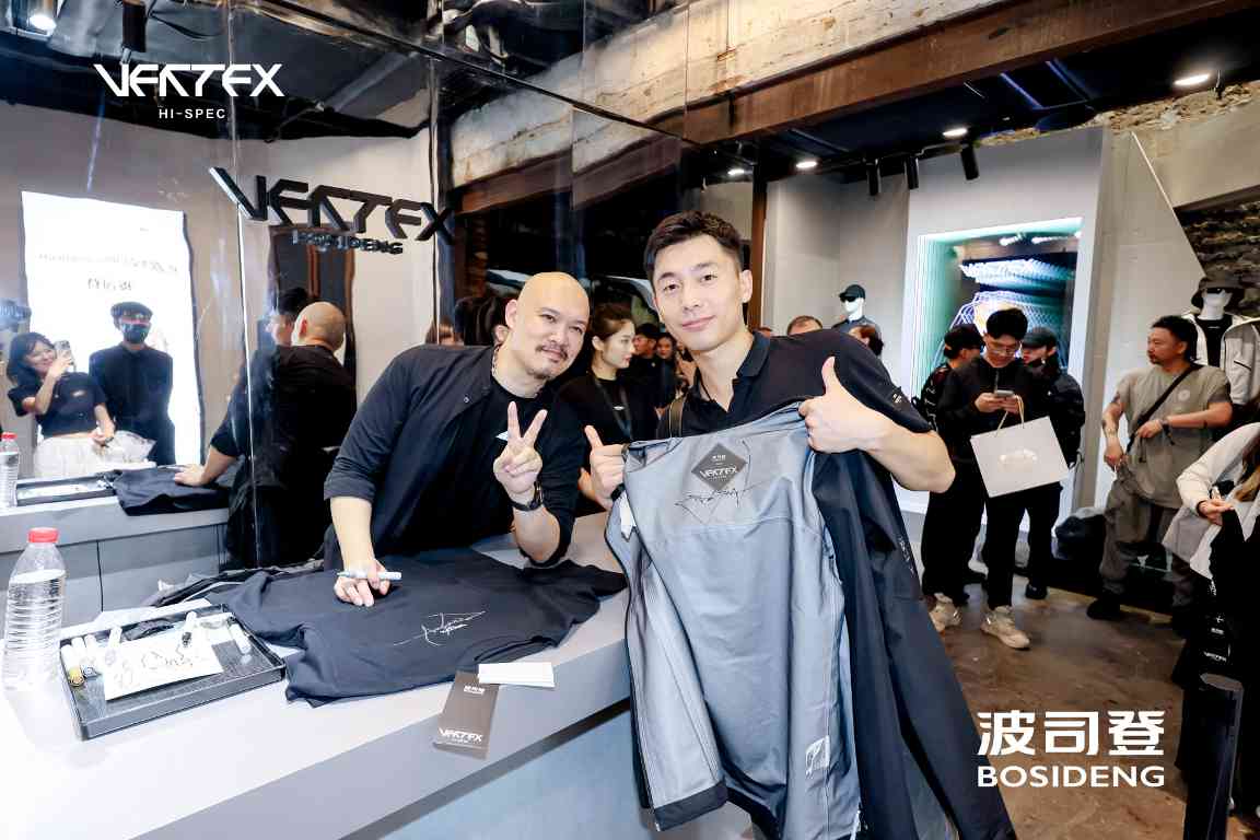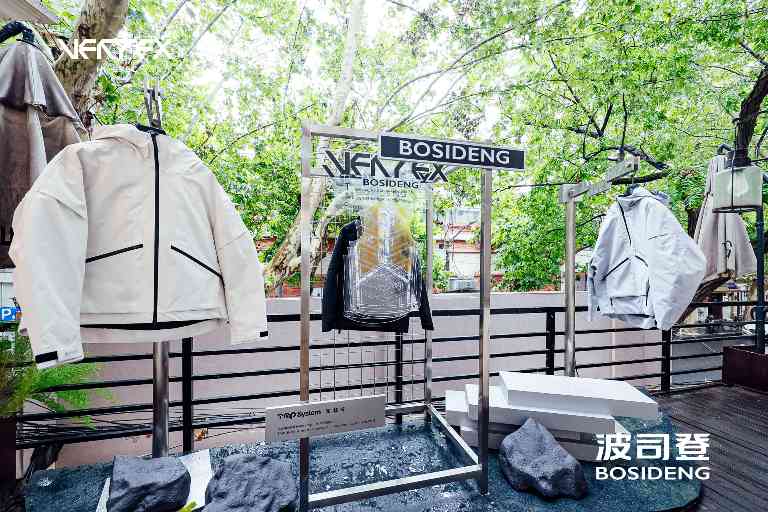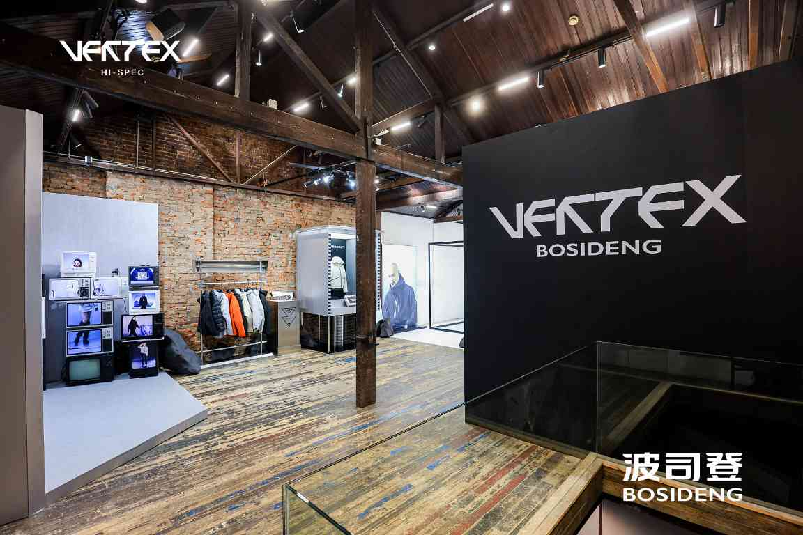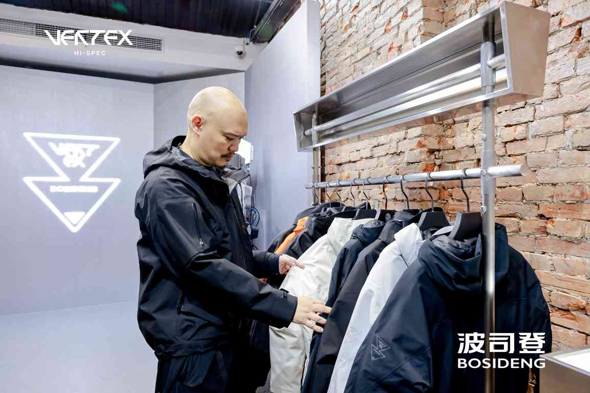 热度从线上转移到线下等不同维度,波司登机能主题活动以多样环节让消费者感受此次系列的性能魅力。「互动体验区」中,参与者用手枪在样衣上喷洒创作,感受 GORE-TEX 防水面料的防护性;「模拟试装区」,消费者可以拍照打卡 VERTEX 系列服饰的虚拟体验;另外还有「启动仪式按键灵感」,Errolson Hugh 设计师与波司登高层共同按下启动键,各类装置运作起来,隐喻该合作系列能适应逆境并应对城市各种变化的高度灵活性。
