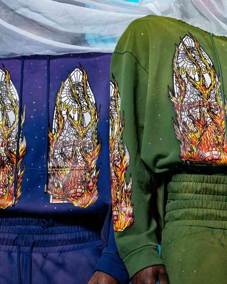 作为创始人之一,同时也是 Ev Bravado 妻子的 Tela D’Amore 这样定义 Who Decides War:「我们不是街头品牌,但源自于街头」。带着这一目标,或者说「使命感」,Tela D’Amore 和 Ev Bravado 开始不断探索,如何用更有机的融合方式,将街头内核与高级时装相互转化,从而摆脱单一的既定风格禁锢。
