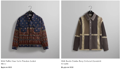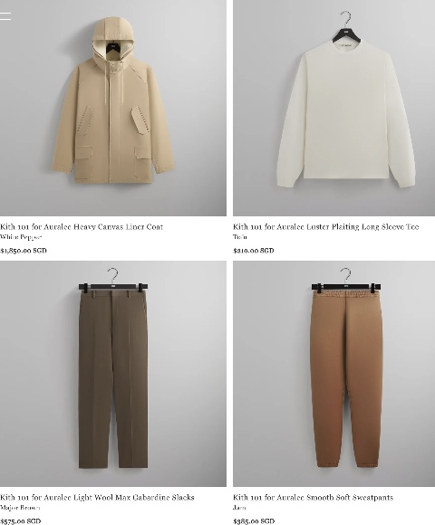 设计、面料、工艺全方位走向高级精品化的结果,就是 KITH 当前单品普遍高昂的售价。不光是与 AURALEE、Giorgio Armani 等奢侈品、时装品牌合作系列售价昂贵,就连自家正常季度单品定价也算不上「亲民」。