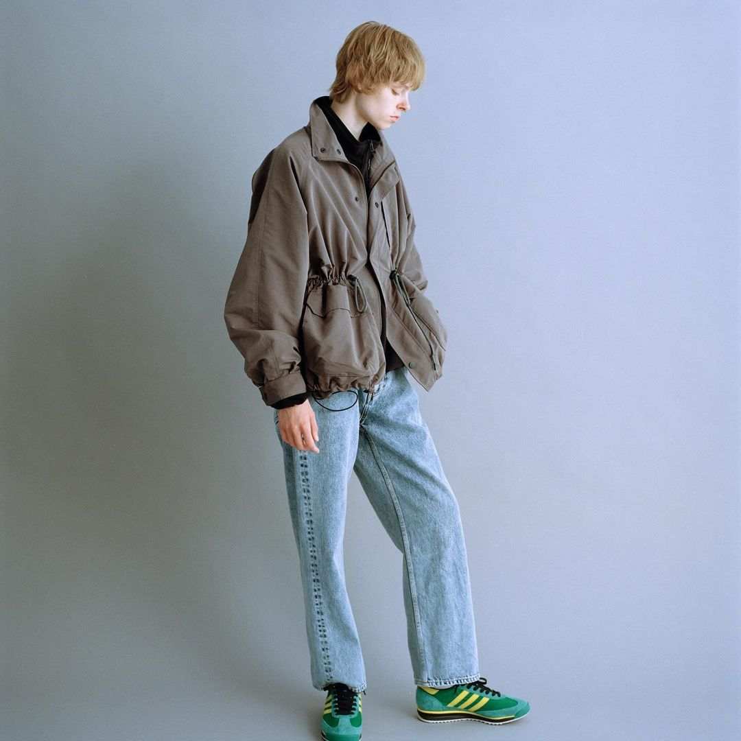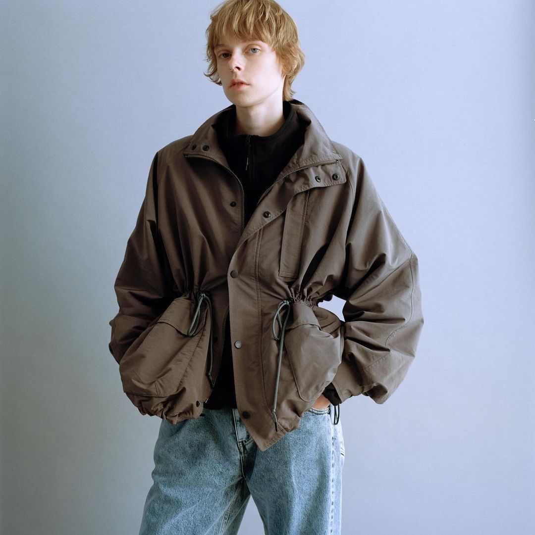 而在 2024 秋冬系列中,这件在袖口、领口以及腰间等部位借鉴大量 M-65 军服细节的夹克,更新出了更加符合「当下版本」的短宽版型,落肩设计和巨大袖笼的组合在自然下垂状态下形成大量皱褶,配合腰间的抽绳,形成连贯的弧线。CABARET POVAL 还为其加入下摆弹力束带,进一步减小躯干处服饰的体积感,与肩、袖部位的强大存在感形成巨大反差,因此让整件单品获得了随性轻松的轮廓,彻底颠覆军事风格的传统气质。预计将于 CABARET POVAL 秋冬第三波发售中登场,感兴趣的朋友不妨多留意。
