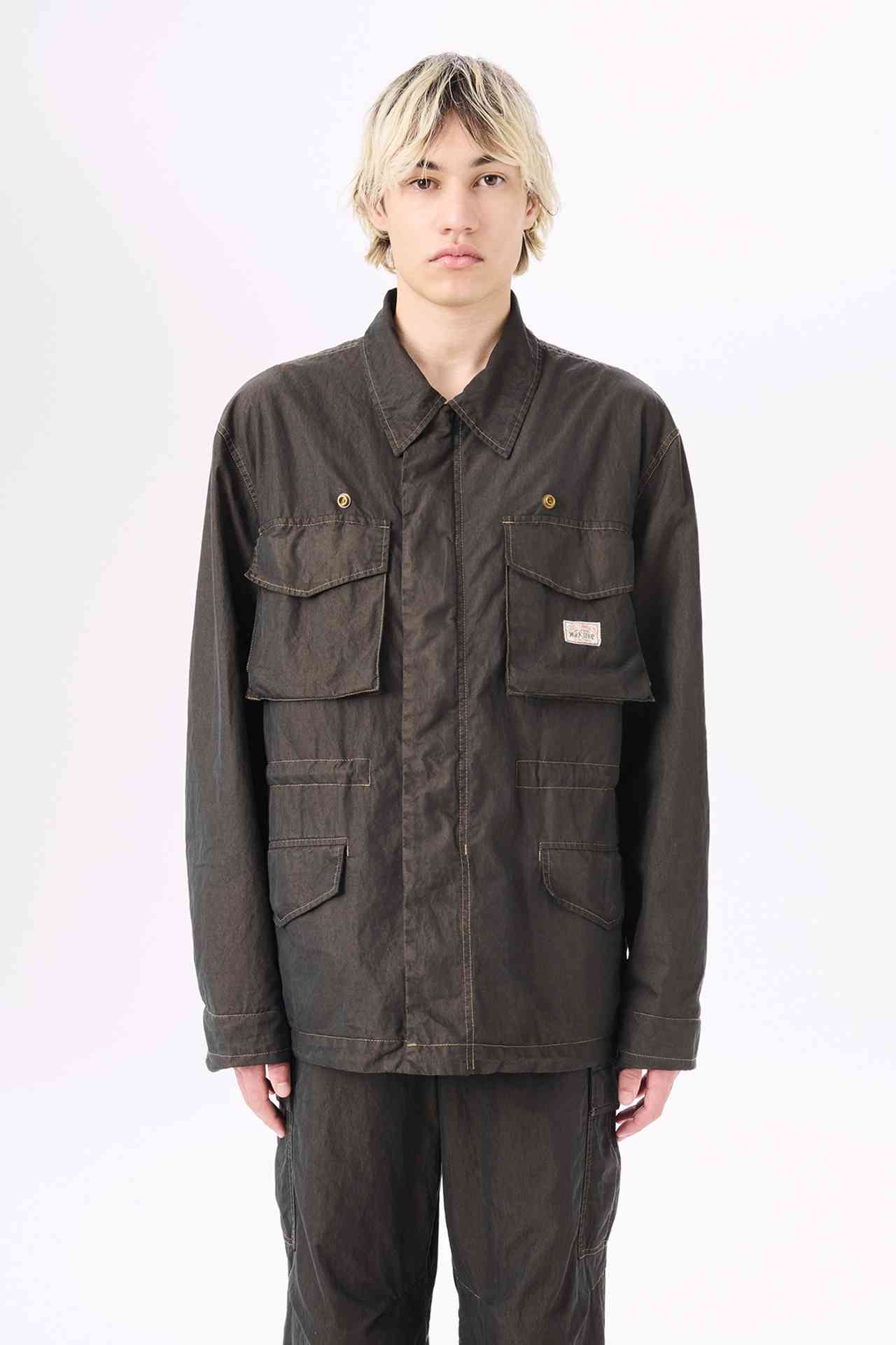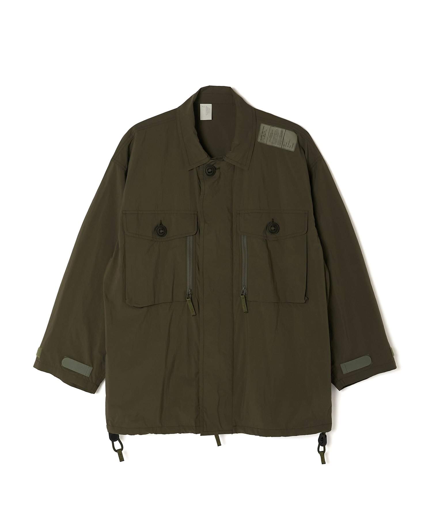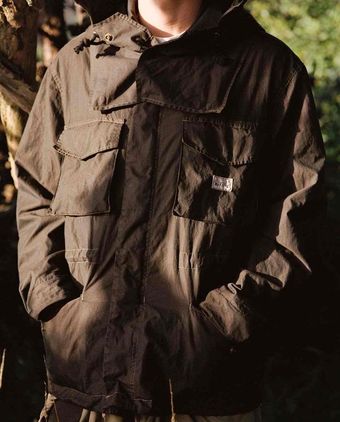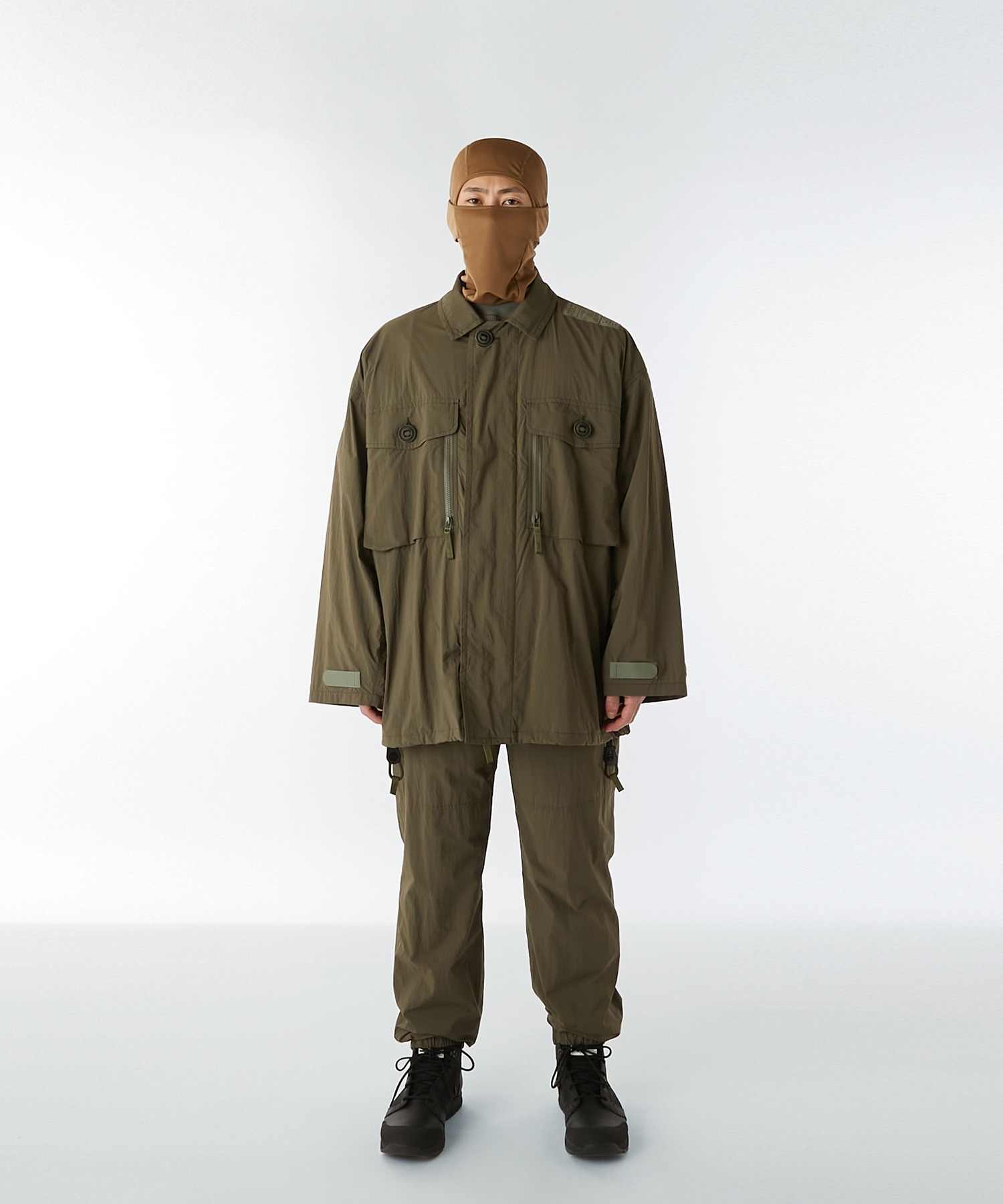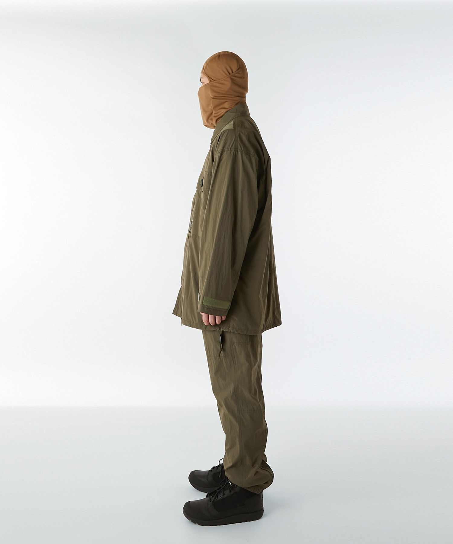 第二弹发售中正式登场的 SHIRT BLOUSON,整体轮廓参考同样在低温环境下活动的加拿大伞兵救援队,在上世纪 90 年代采用的飞行夹克。纽扣样式以及胸口处口袋的拉链设计则是受到 21 世纪初加拿大军队更新的 IECS (Improved Environmental Clothing System) 冬季保温系统中作战夹克的启发。高密度尼龙防撕裂面料经过无氟防水处理后仍旧能呈现出自然的皱褶纹理,配合支线标志性的军用规格标签装饰在左肩,在军事风格相对严肃的整体框架下,相信这些细节的处理也能打动一部分爱好者。
