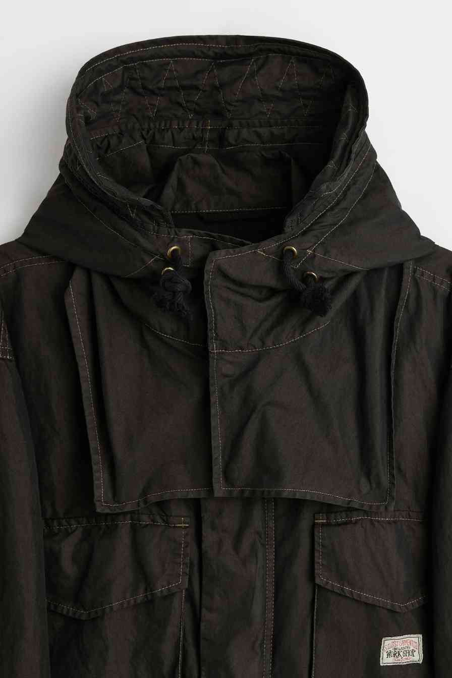 且 Stüssy 和 OUR LEGACY WORK SHOP 各自作为街头时尚与时装领域的氛围营造大师,自然也会在版型和细节上进行推敲。相比 FILSON 等品牌推出的完全为极端户外环境打造的 Ranger Jacket,该产品取消了可拆卸抽绳兜帽通过领子下方按扣进行固定的设计,选择在两侧胸口口袋的上方各添加一枚黄铜纽扣,为兜帽增加防雨前襟的同时,两种形态切换也能更加自如。配合面料的轻微光泽和肌理质感,能适应更多日常场景。