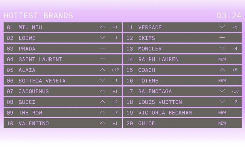 2024 年第三季度热门品牌榜单 | Via LYST