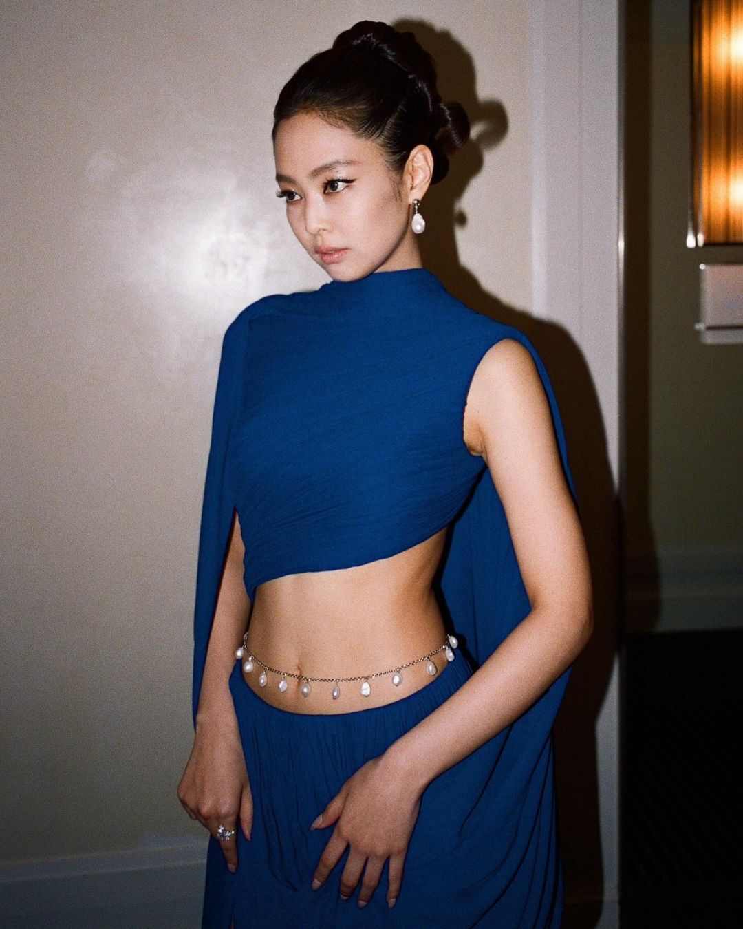Jennie 穿着 Alaïa 蓝色礼服出席 Met Gala | Via VOGUE