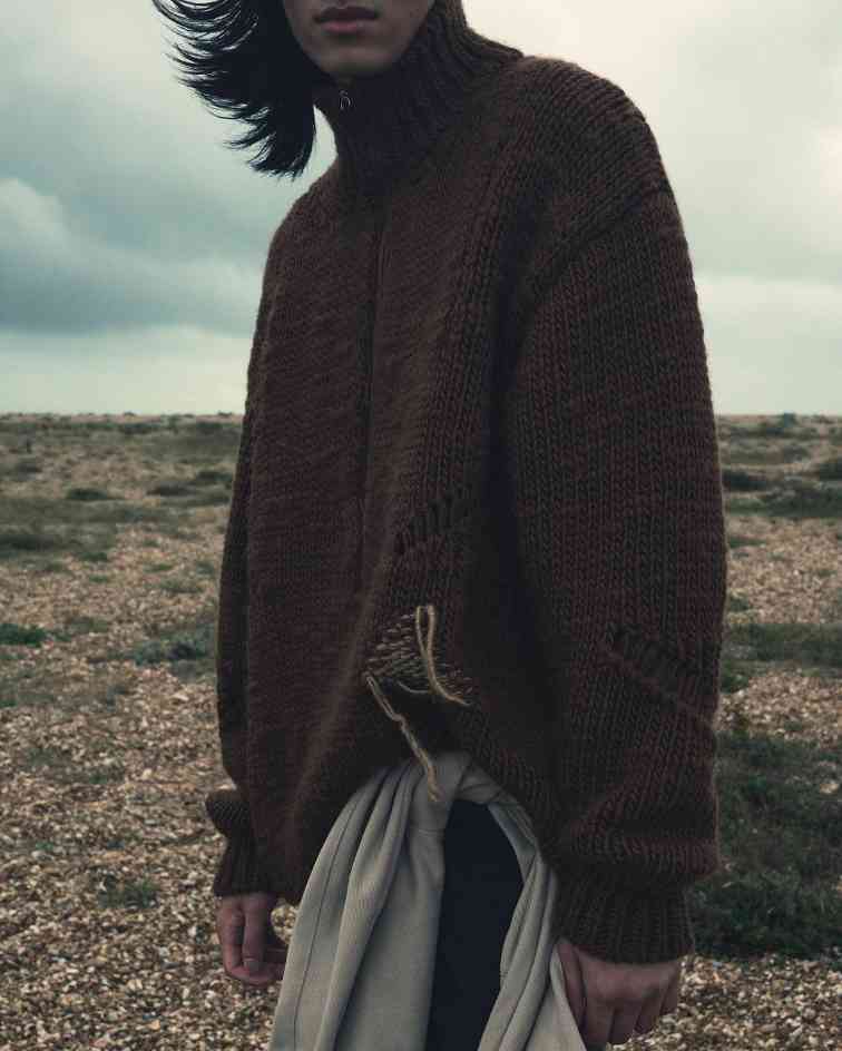 而对于更讲求精巧设计感和独特风格意境的户外时装新锐们来说,无论是肌理、廓形、破坏处理、层次结构等立体层面的元素设置,还是特殊染色、印花等平面维度的视觉呈现,针织品类都能在保证制作成本更可控的同时,还原出更契合原始设计构想的外观效果。
