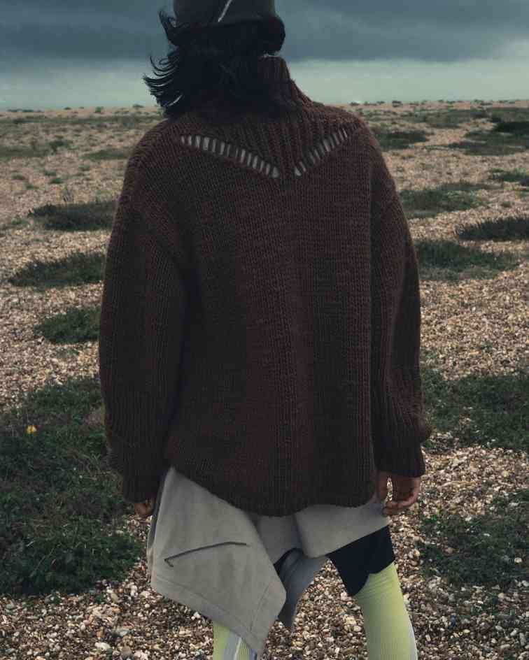 破洞、勾线、立体缝线式的装饰性结构,以及山脉纹路和品牌标识的简约图案,是 ROA Hiking 热衷运用在自家开衫、套头毛衣,以及翻领半拉链针织衫、冷帽等多款式上的风格元素。在 ROA Hiking 运用纯熟的自然系雅致色调映衬下,高级时装感氛围呼之欲出。