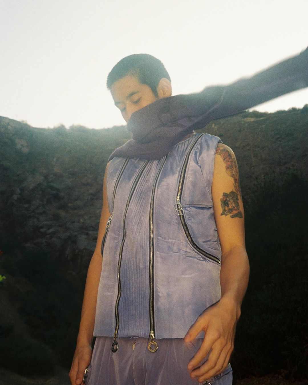 奇异的立体廓形、醒目且风格强烈的大面积印花图案,以及独特的漂染式色调,这些帮助 Charlie Constantinou 迅速成名的招牌画风特征,也同样出现在品牌的多件单品之中,不断延续着自己「异世界末日」般氛围的飘渺美学概念。