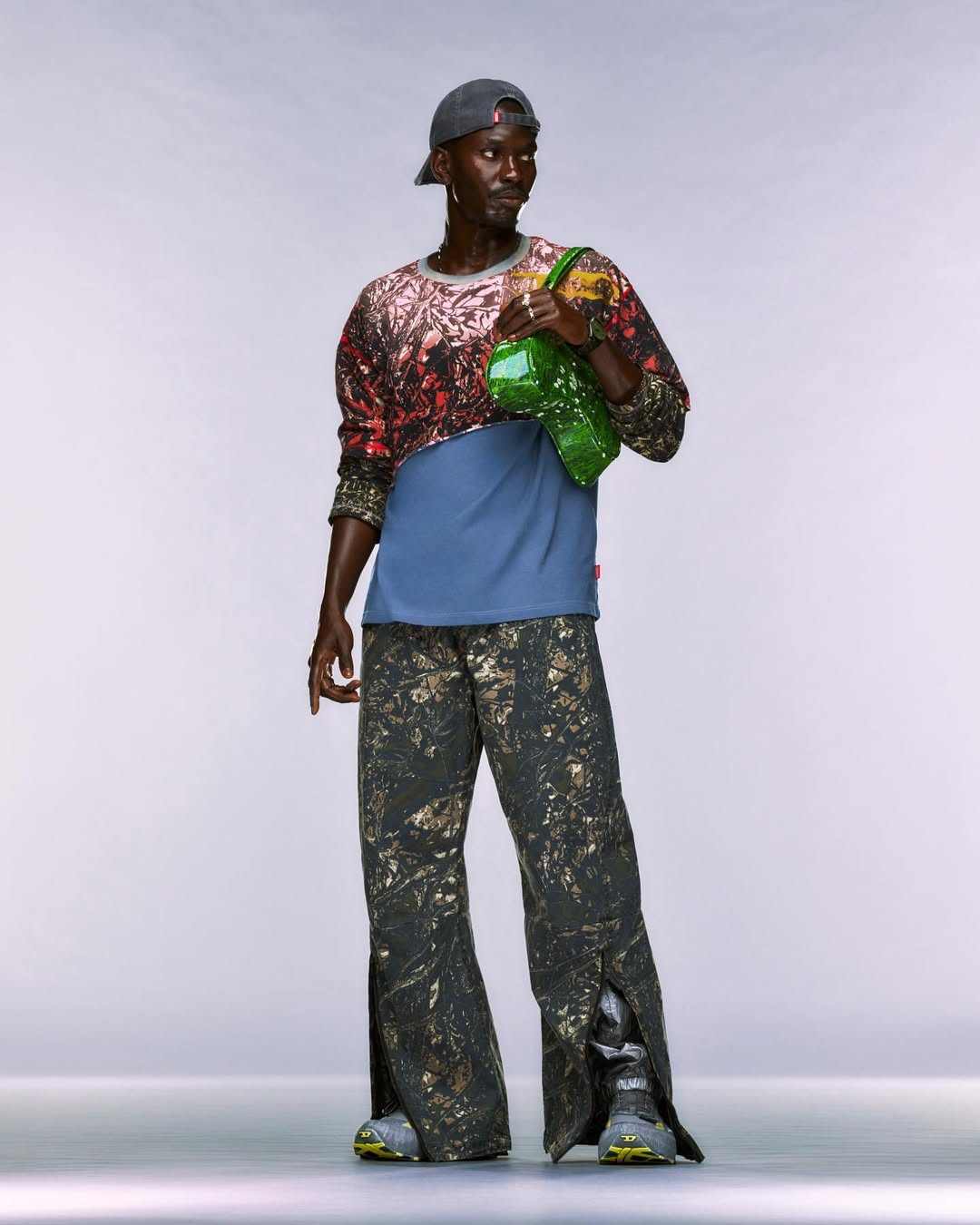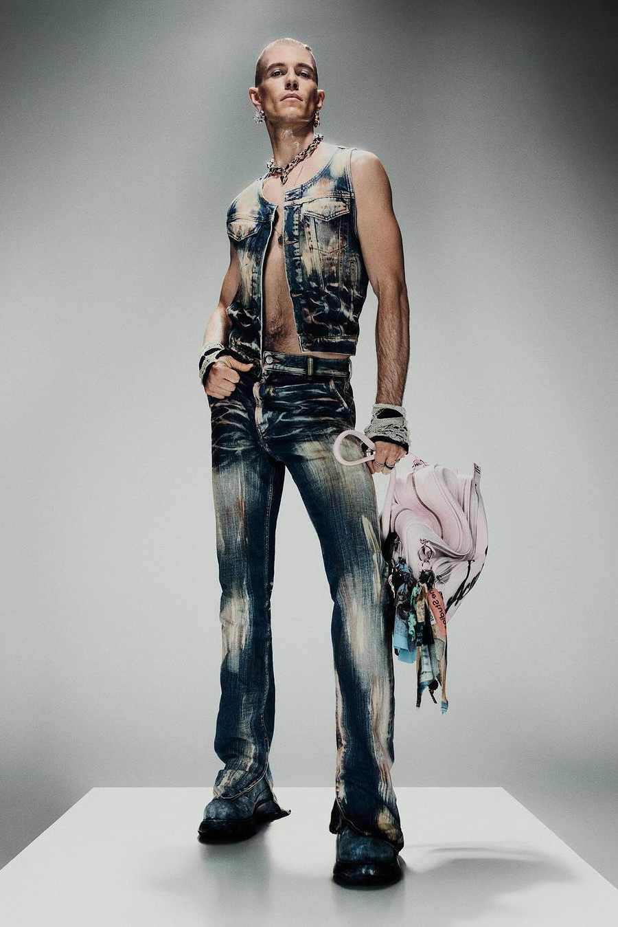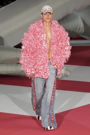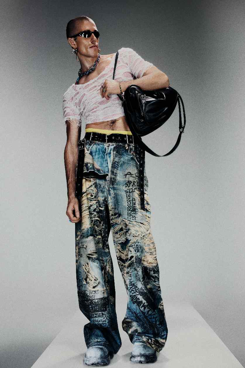 可惜强劲势头并未持续太久,从去年开始,太过风靡的人气,也为 DIESEL 带来恶评:「非主流」、「精神小伙」穿搭的声音,不绝于耳;而从品牌刚刚释出的新季作品来看,DIESEL 和 Glenn Martens 似乎已下定决心「一非到底」。